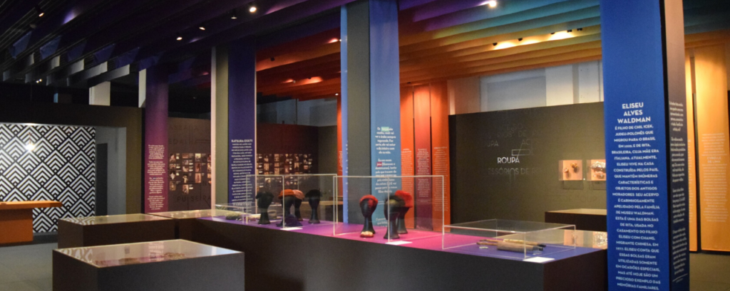 Nessa exposição, apresentamos essas peças em sua polissemia, ou seja, evidenciando os múltiplos significados que podem adquirir no contexto da história dos deslocamentos humanos, tornando-se símbolos das mais diversas formas de pertencimento e identidade. Possíveis habitantes de uma vitrine em outros espaços ou outros tempos, esses objetos saíram das lojas e das ruas para habitar corpos humanos, vestindo-se eles mesmos de novas conotações com suas histórias e usos. Aqui, são ressignificados e voltam à vitrine – desta vez, no espaço do Museu.
